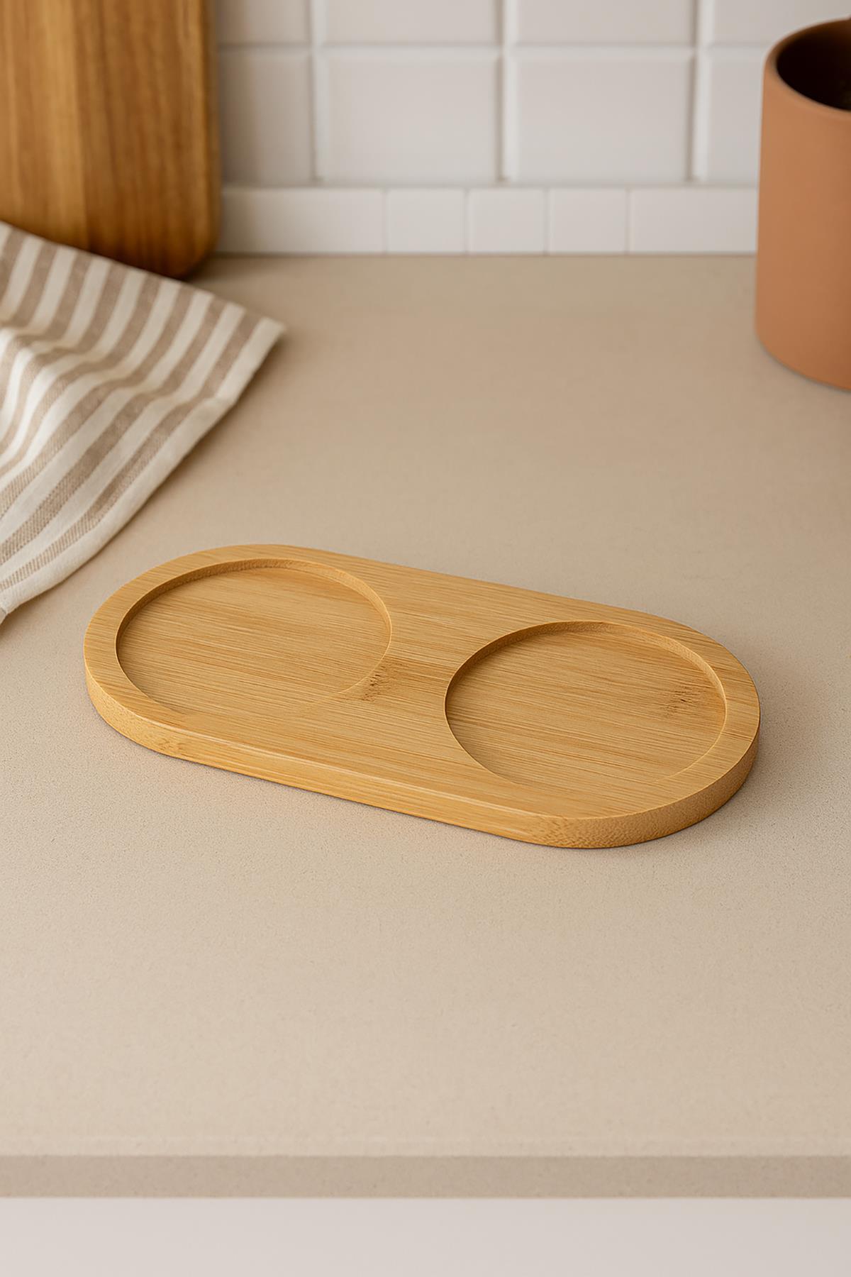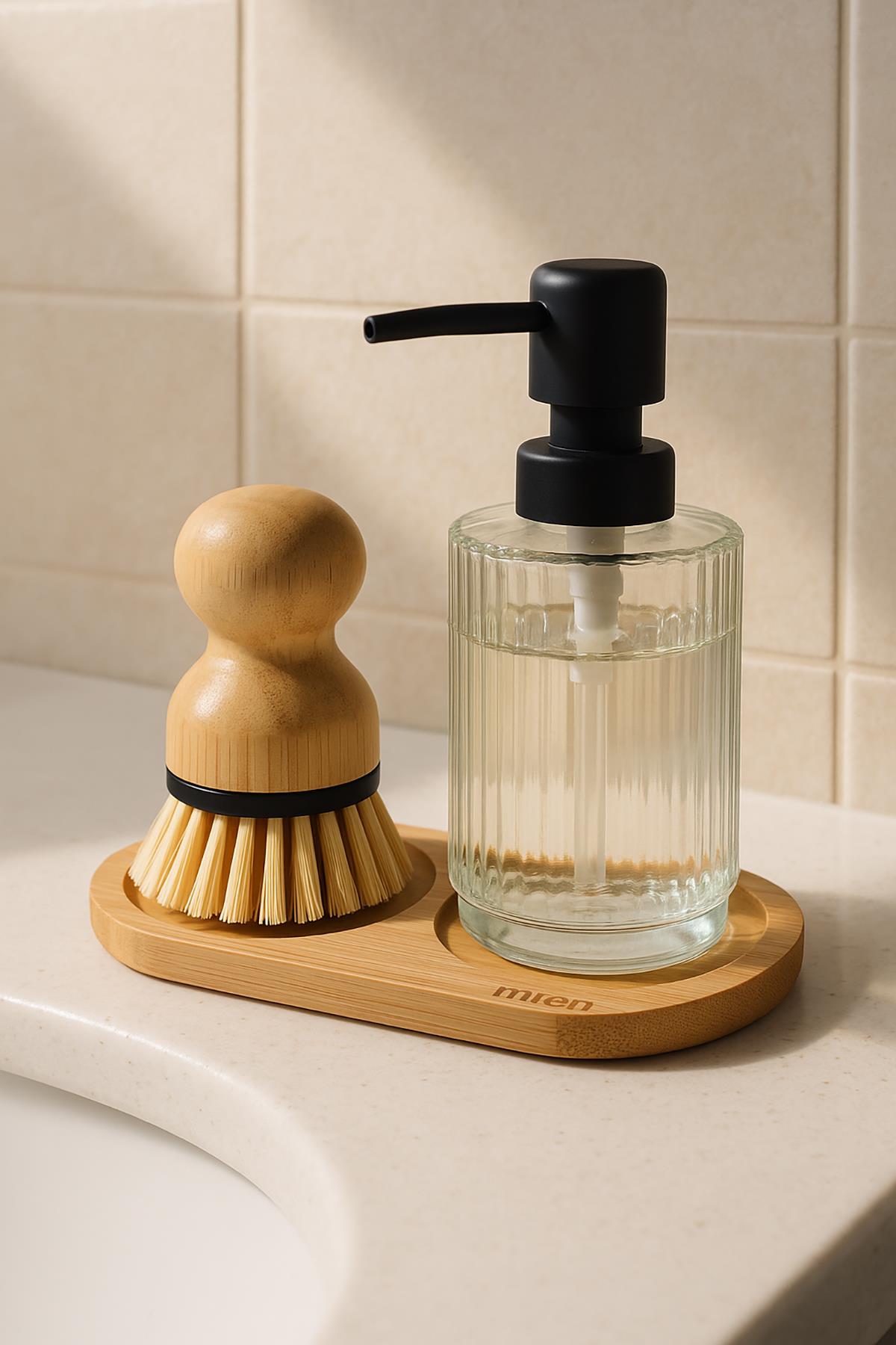 3 Parça Bambu Altlıklı Sabunluk ve Temizlik Fırça Seti