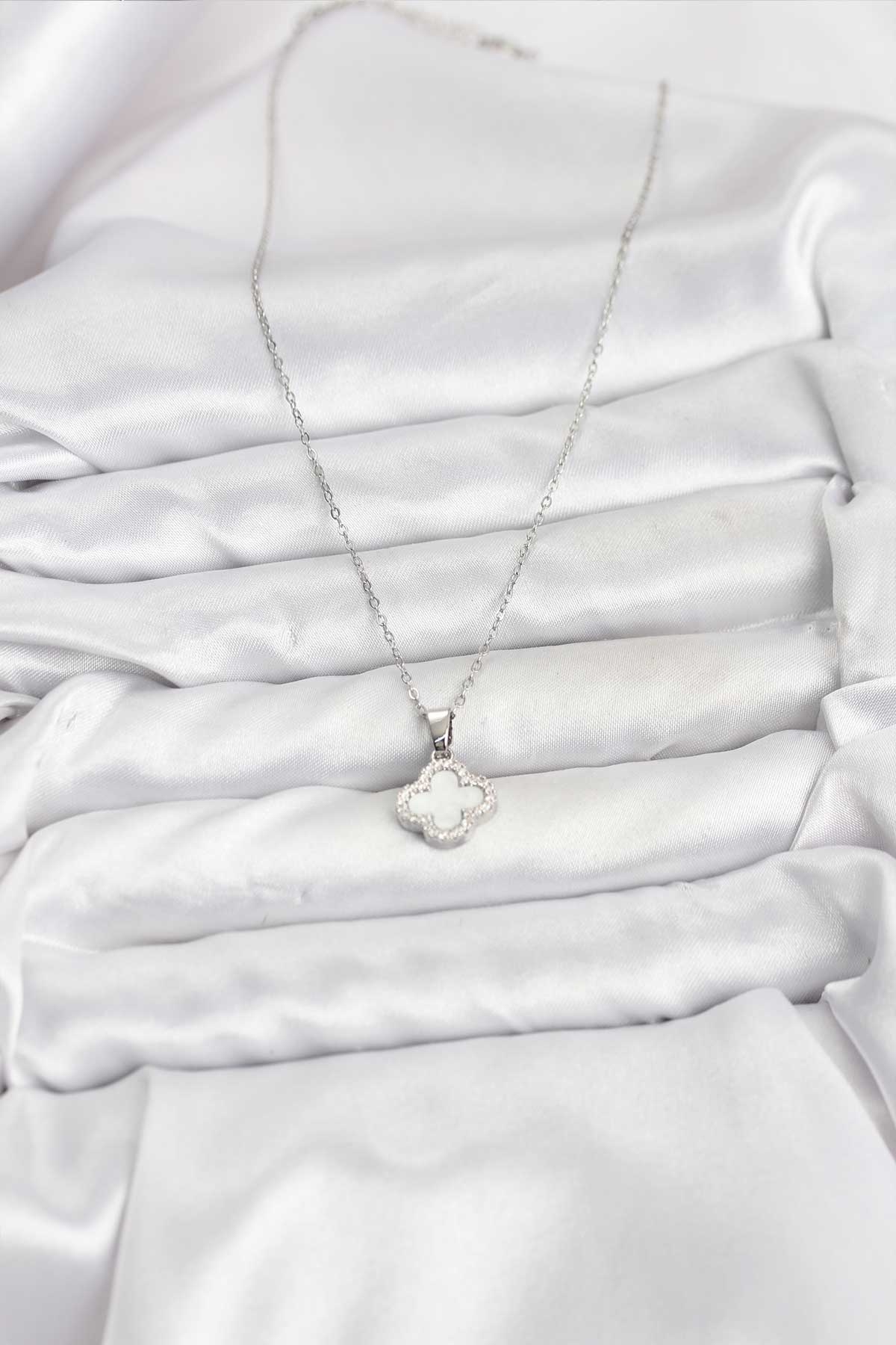 316L Çelik Zincir Gümüş Renk Sedefli Yonca Kadın Kolye