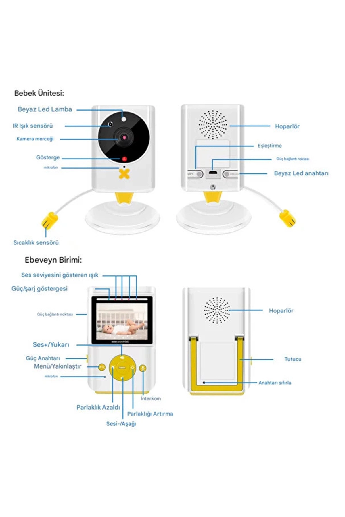 2 Yönlü Ses: İki yönlü konuşma iletişimini destekleyin, bebeğinizin ağlamasını duyduğunuzda,