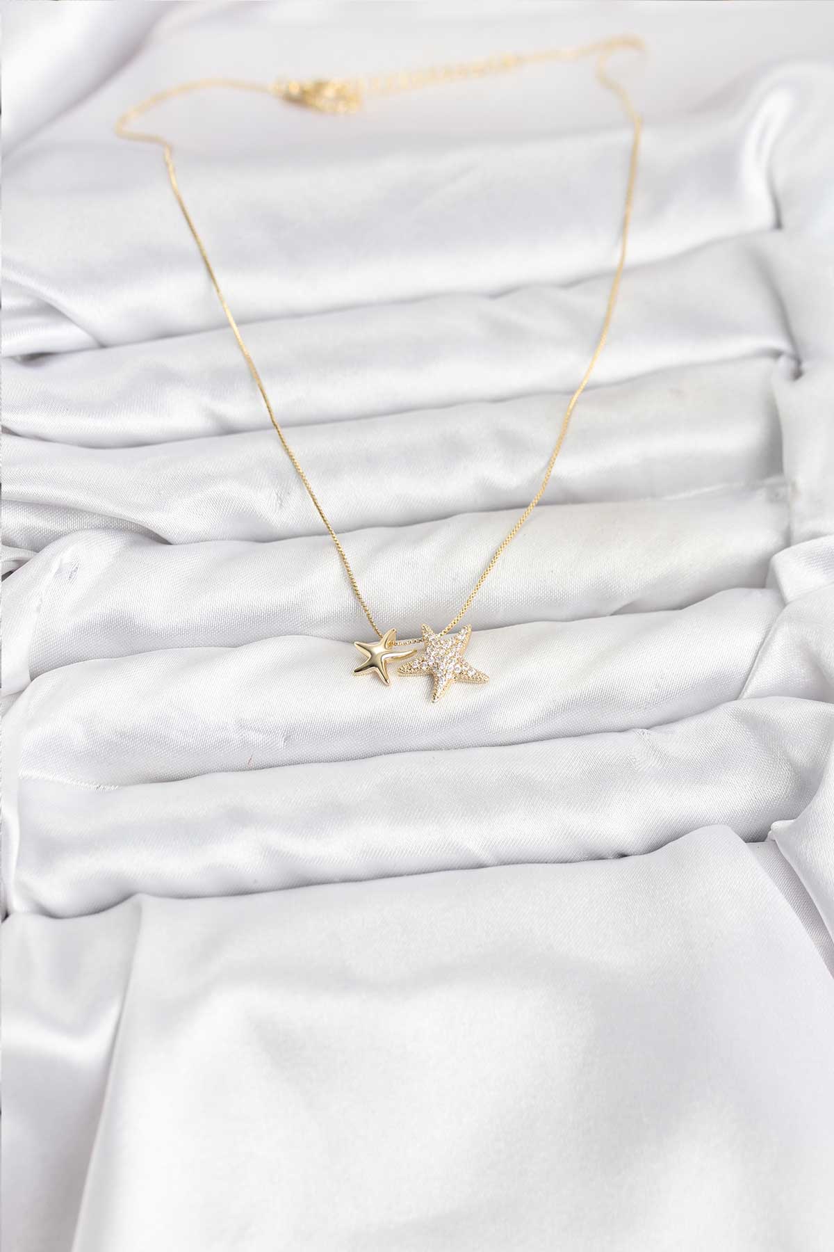 Gold Renk Pirinç Minimal Yıldız Model Kadın Kolye