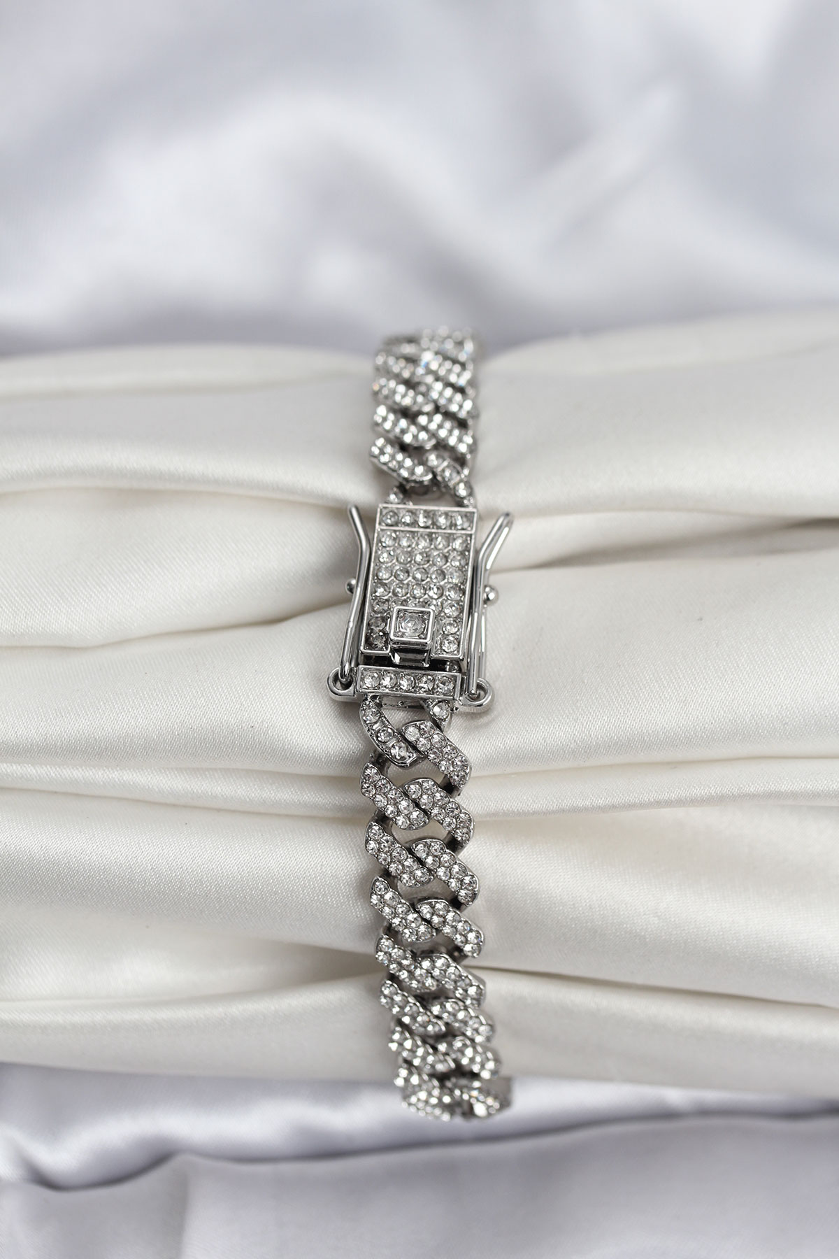 Gümüş Renk Pirinç Cuba Chain Gurmet Bileklik