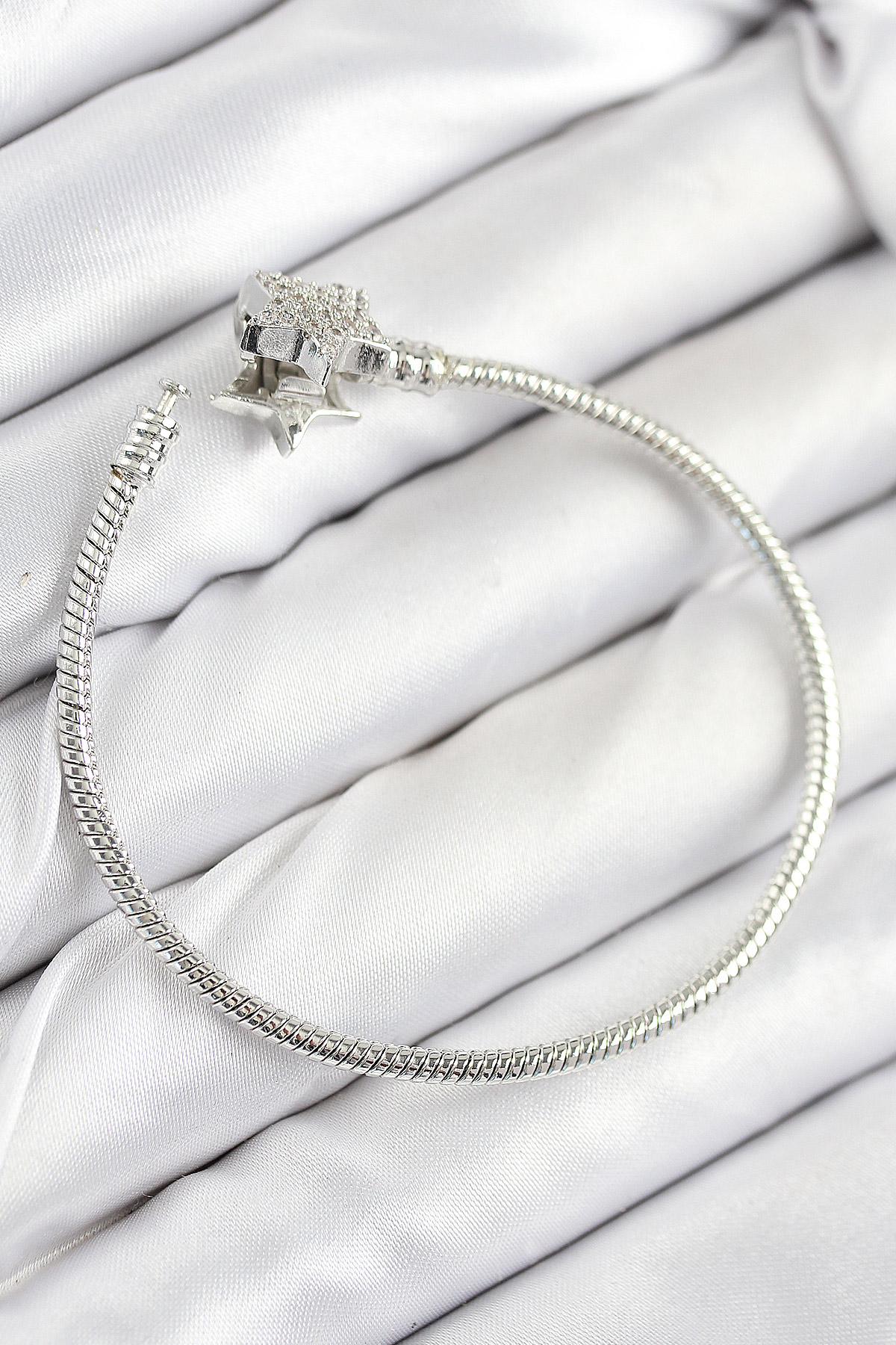 Pirinç Charm Zirkon Taşlı Yıldız Model Gümüş Renk Kadın Bileklik