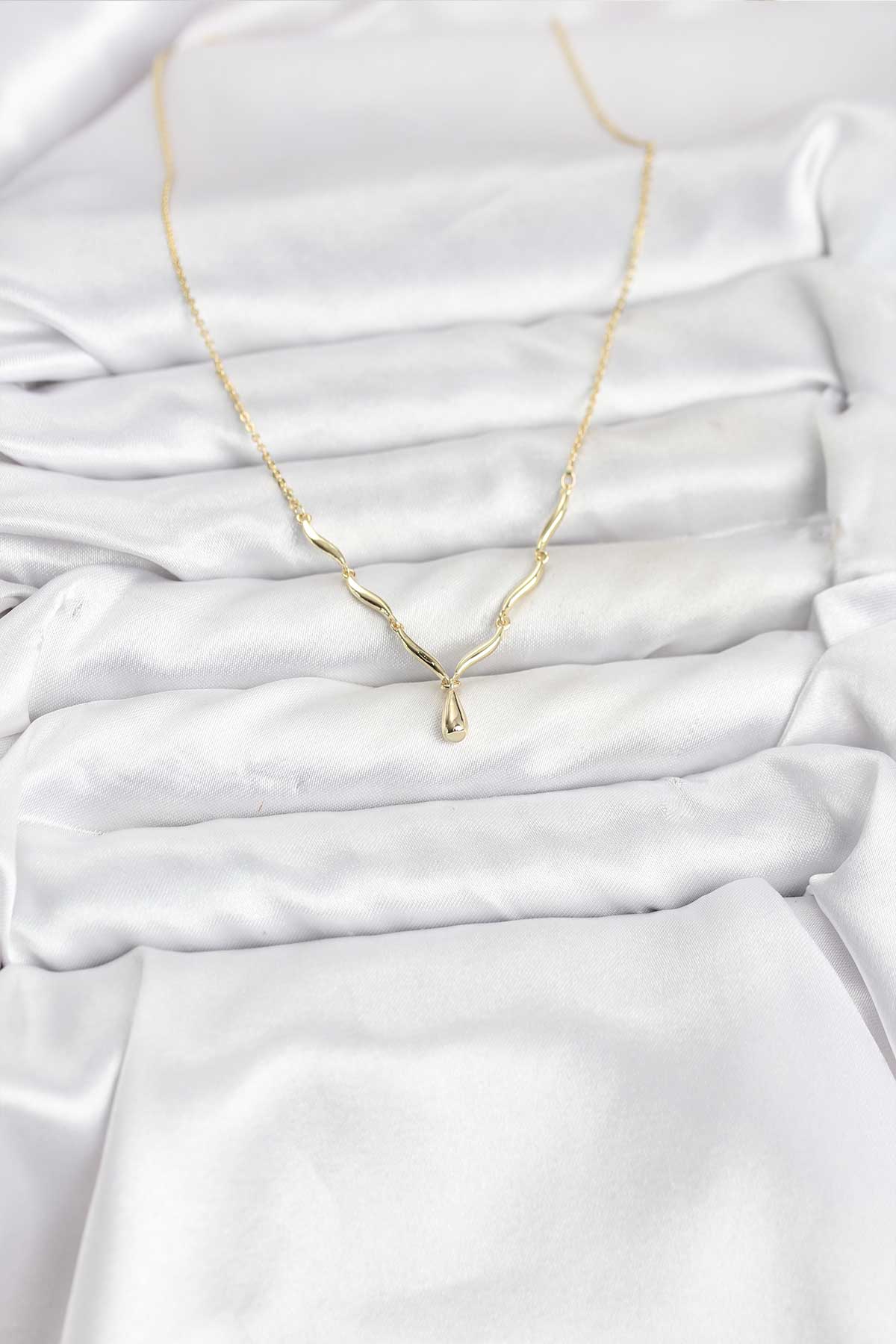 Pirinç Gold Renk Damla Model Kadın Kolye