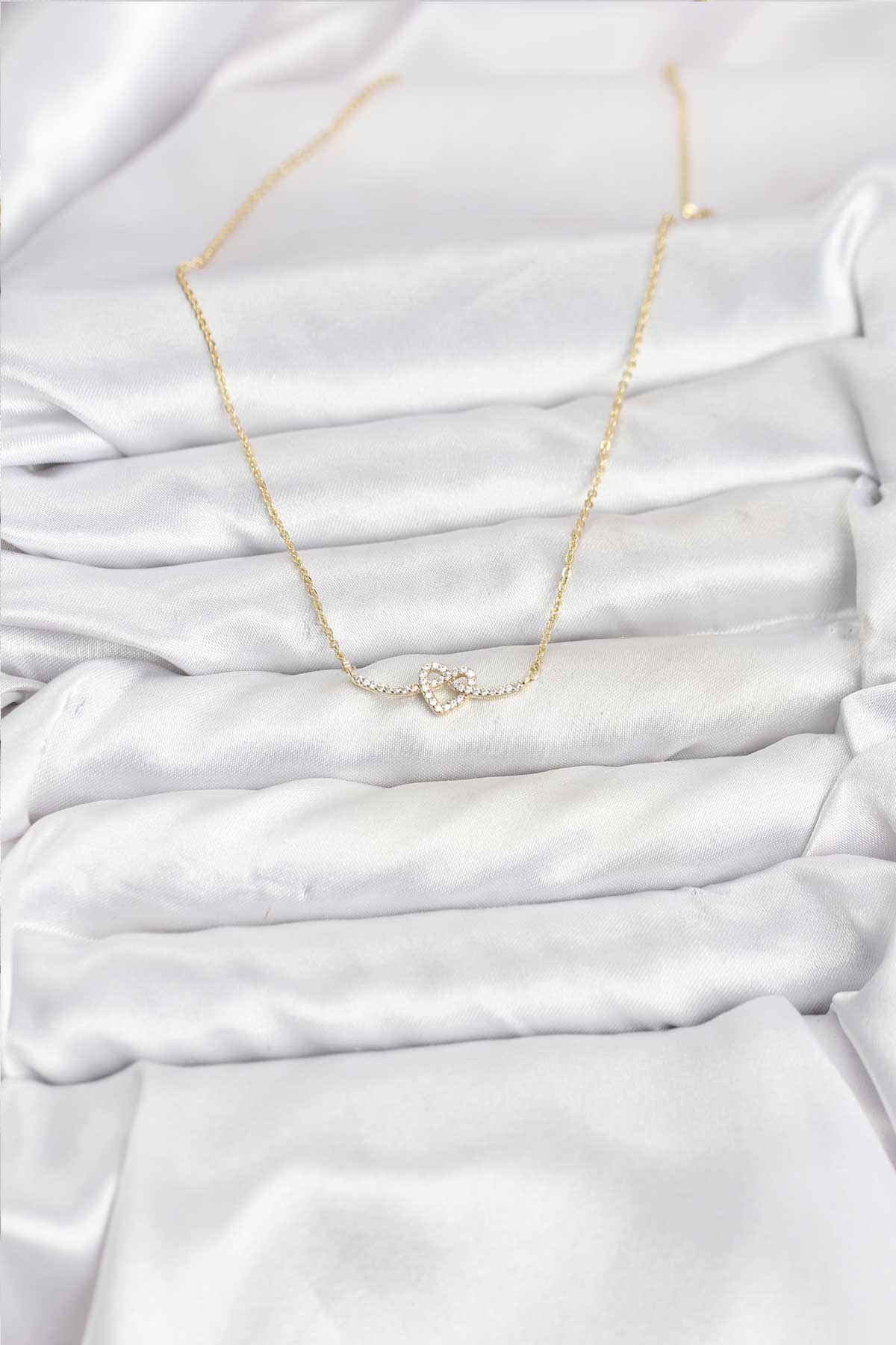 Pirinç Gold Renk Düğüm Kalp Model Kadın Kolye
