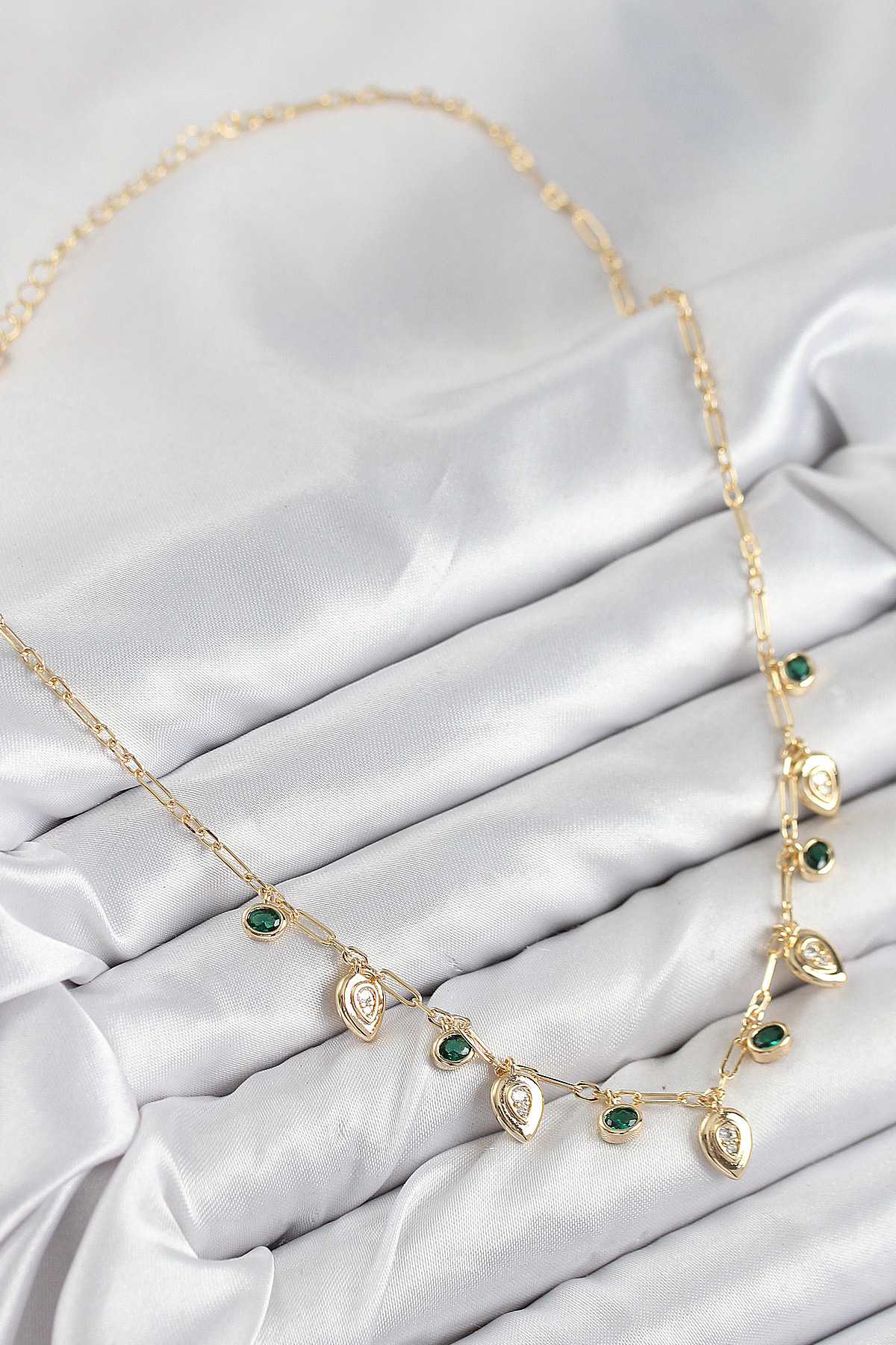 Pirinç Zirkon Taşlı Sallantılı Damla Model Gold Renk Kadın Kolye