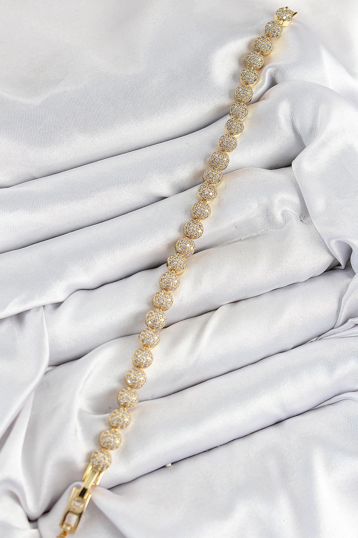 Pirinç Zirkon Taşlı Yarım Topcuk Model Gold Renk VIP Seri Kadın Bileklik