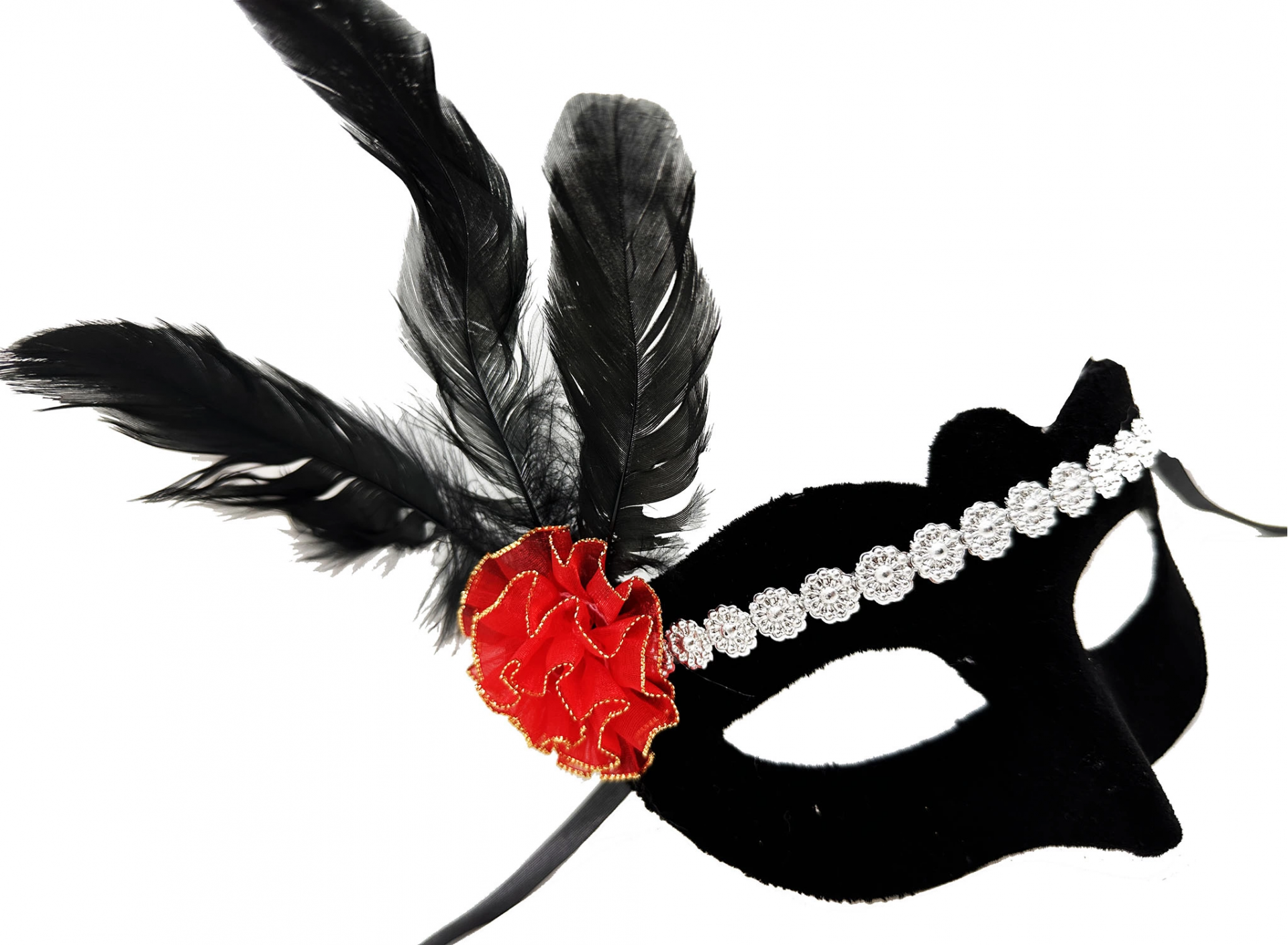 Siyah Renk Süet Kaplama Gümüş Dantelli Kırmızı Gül Tasarımlı Parti Maskesi (18x20 cm)Romantik ve Zarif Bir Görünüm İçinSiyah Renk Süet Kaplama Gümüş Dantelli Kırmızı Gül Tasarımlı Parti Maskesi, balolar, maskeli partiler...
