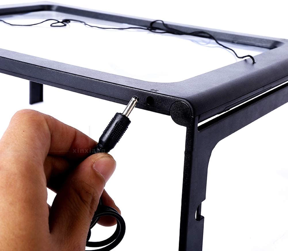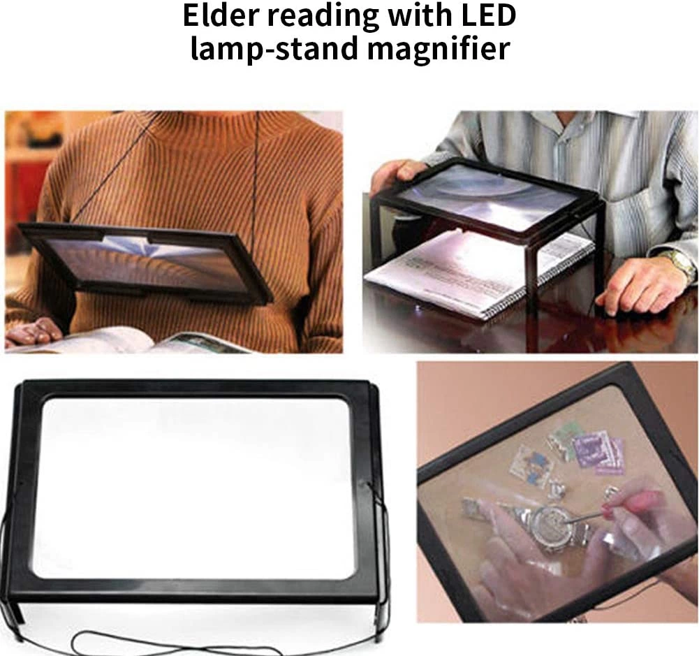 Yepyeni ve yüksek kaliteBüyütme: 3XLens boyutu: 24x16.5cmBacaklar uzunluğu: 9.7cmAydınlatma: 4 LED ışıklarıMalzeme: ABS plastikPiller: 2 AAA pil ,Elektrik kabluRenk: siyahBoyutlar: 27.5x20.5x2cm Net a...
